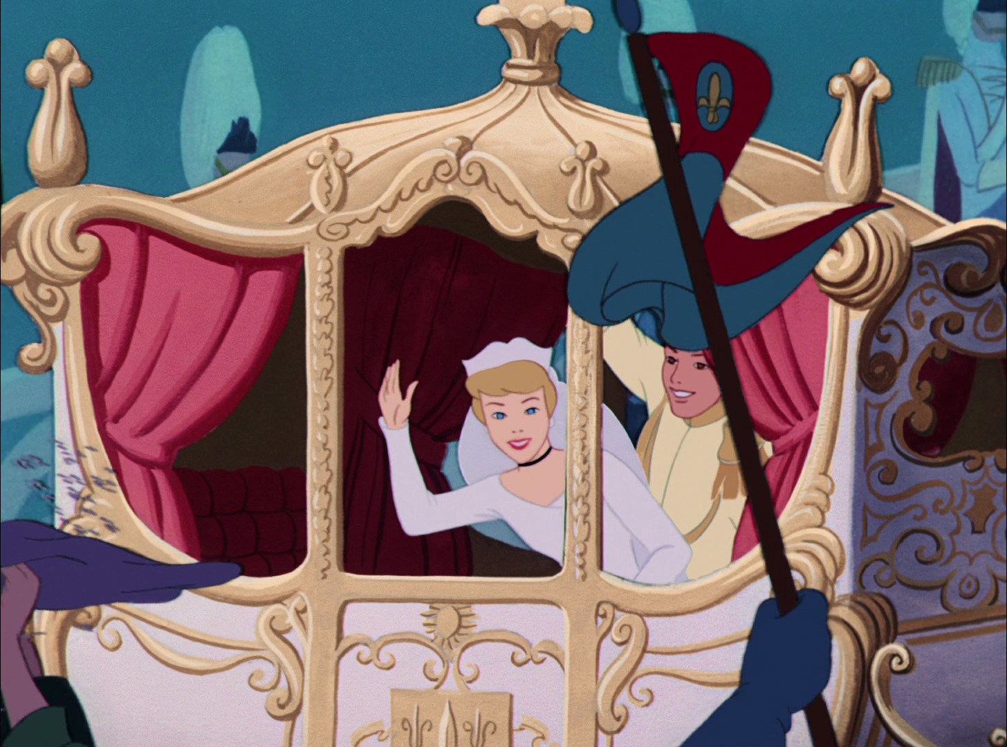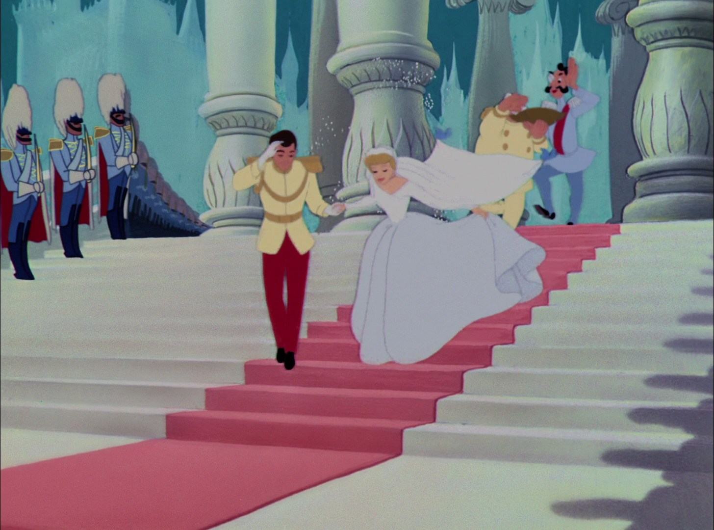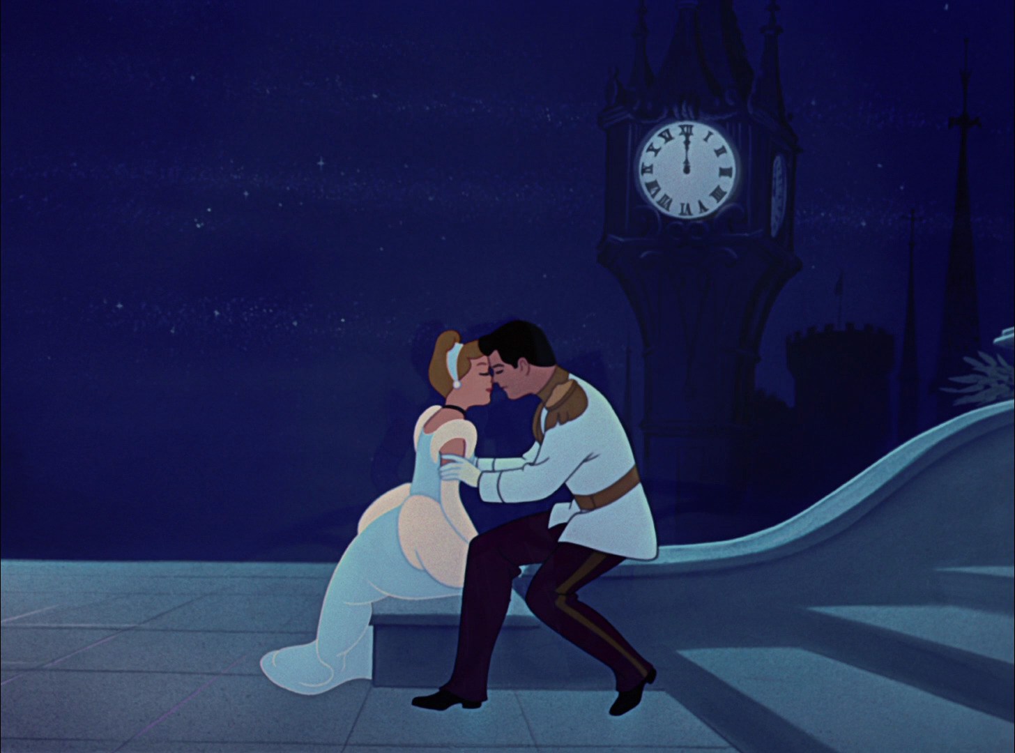 I believe that this shared ideal of personal freedom brings the two of them together. After all, they can't have just danced for hours (unless they're super athletic, LOL). I think they spent a good deal of time talking at the various places pictured before the clock started striking twelve, and they found they had a lot in common. Now, I know this theory doesn't have a ton of support from the film, due to the magical musical montage of dancing, but I think this headcanon makes the prince's sudden love for Cinderella much more understandable. (Also, I think it's entirely possible to talk with somebody at a party for hours and never get around to introducing yourself by name--I do it all the time, though I never mean to! LOL!!)