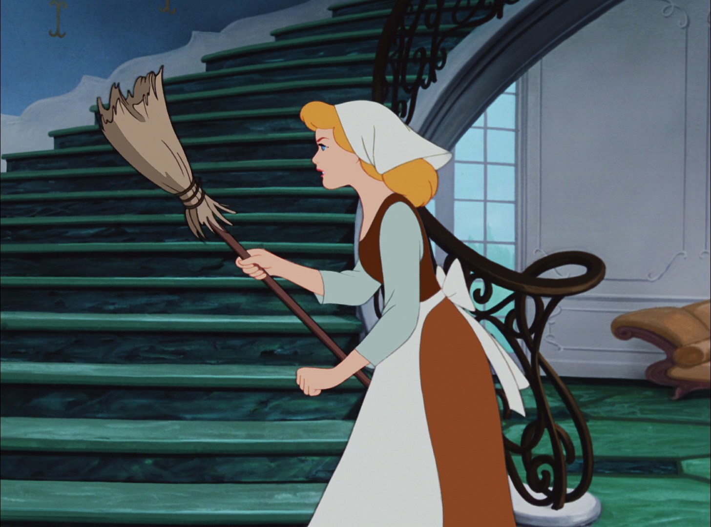 Another notable thing is Cinderella's simple faith that her situation will improve one day. She compartmentalizes it often, merely doing what she has to for her existence every day, but she does allow herself to think about her hopes, dreams, and wishes at certain times (when things are looking particularly hopeful and she's alone). "A Dream is a Wish Your Heart Makes" illustrates this perfectly; her faith is matter-of-fact and practical, not too mystical nor too chipper.