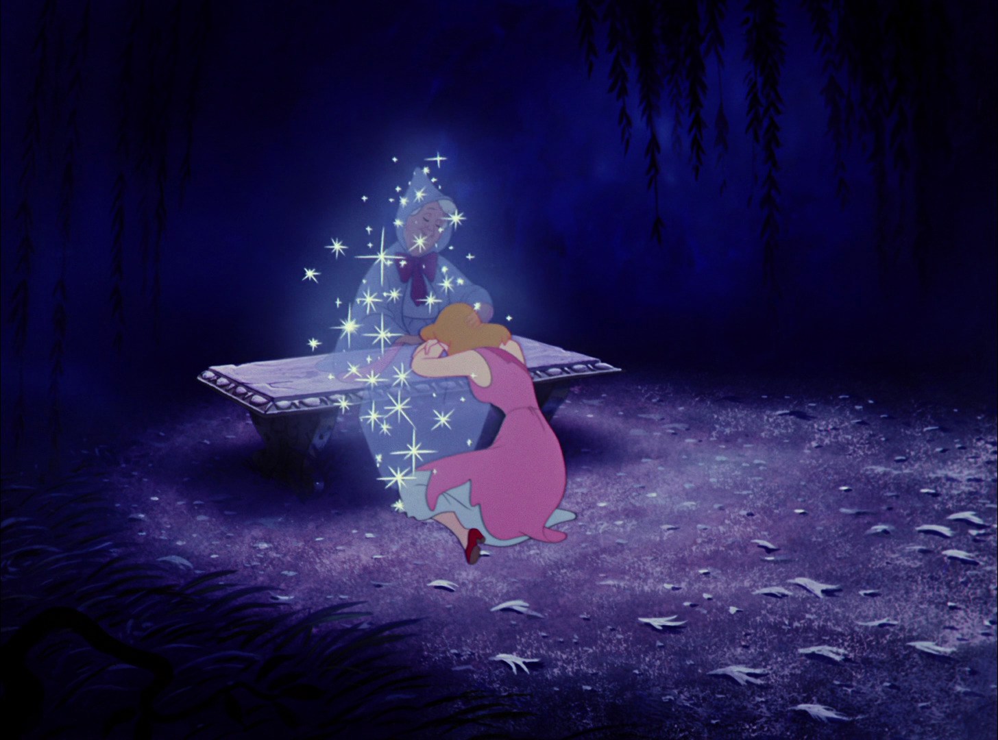 She feels broken and defeated, and it is at that moment that the Fairy Godmother chooses to arrive, because Cinderella has finally come up against an obstacle she can't overcome with rationalization and practicality.