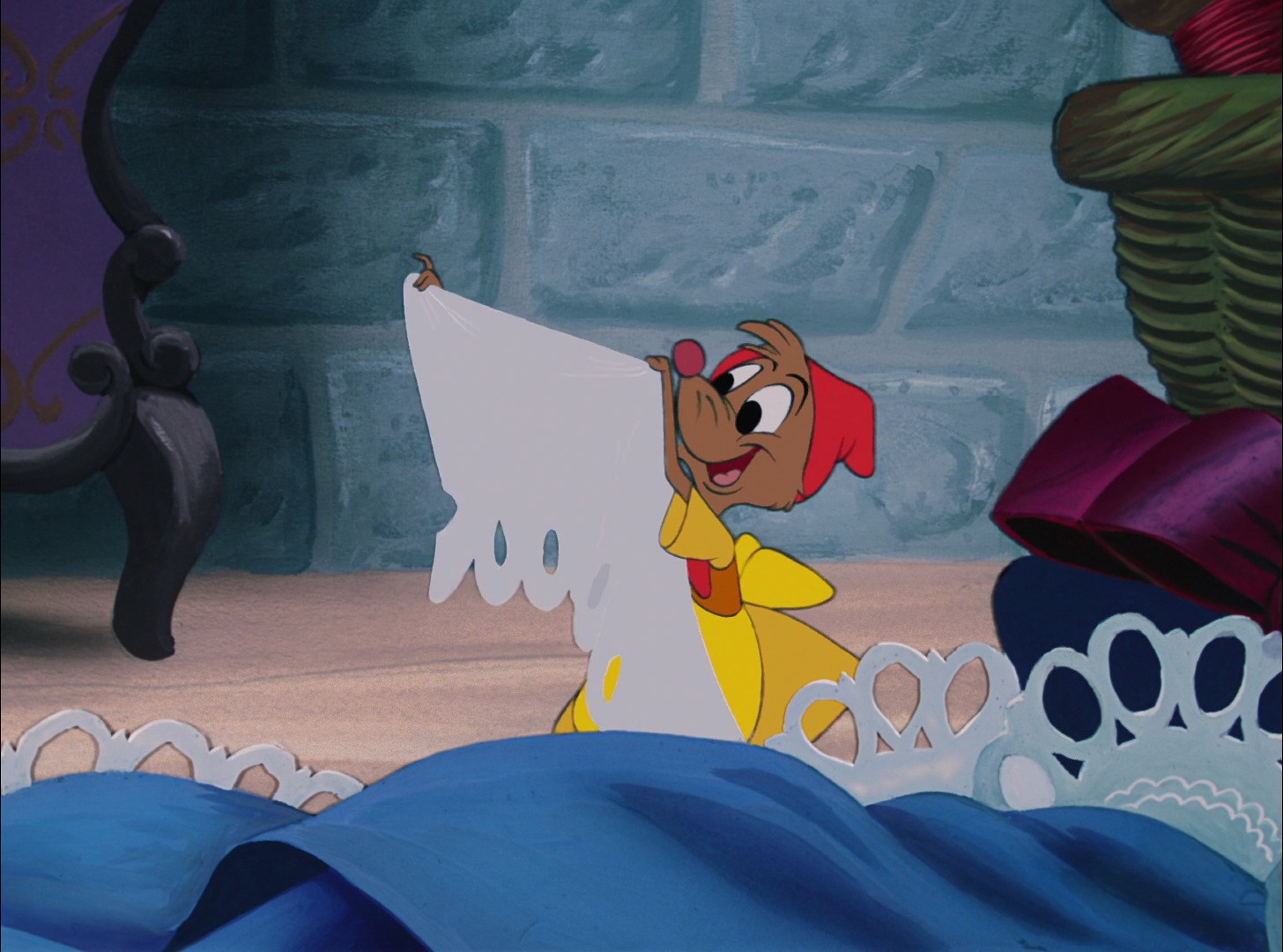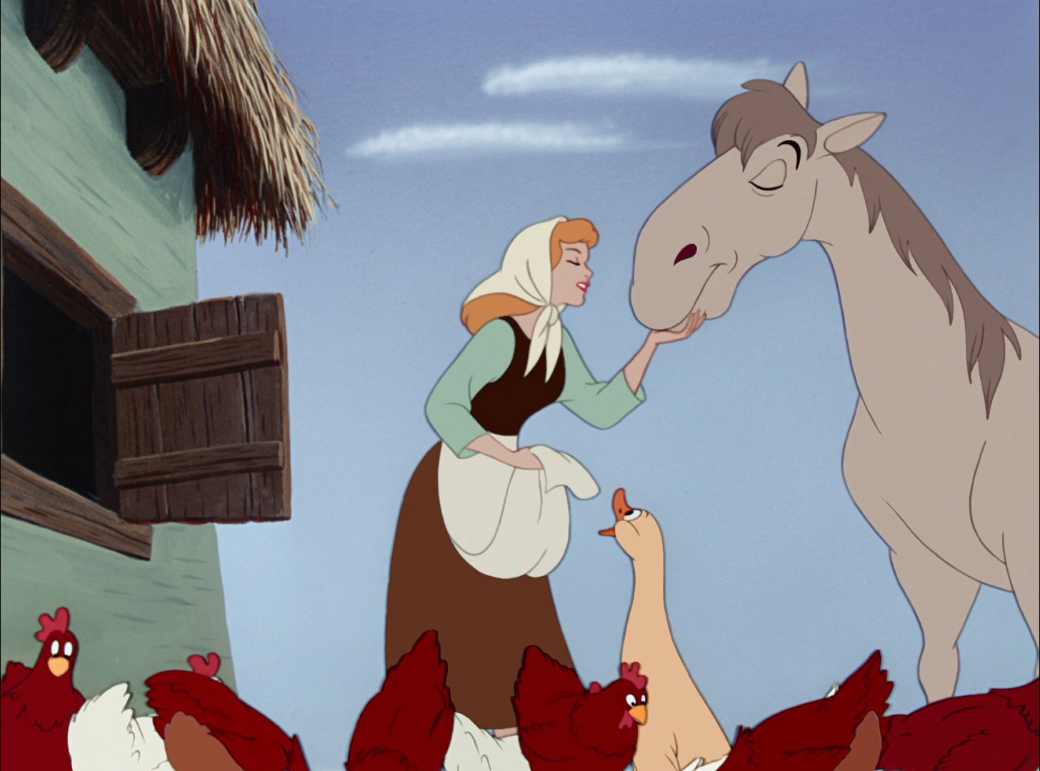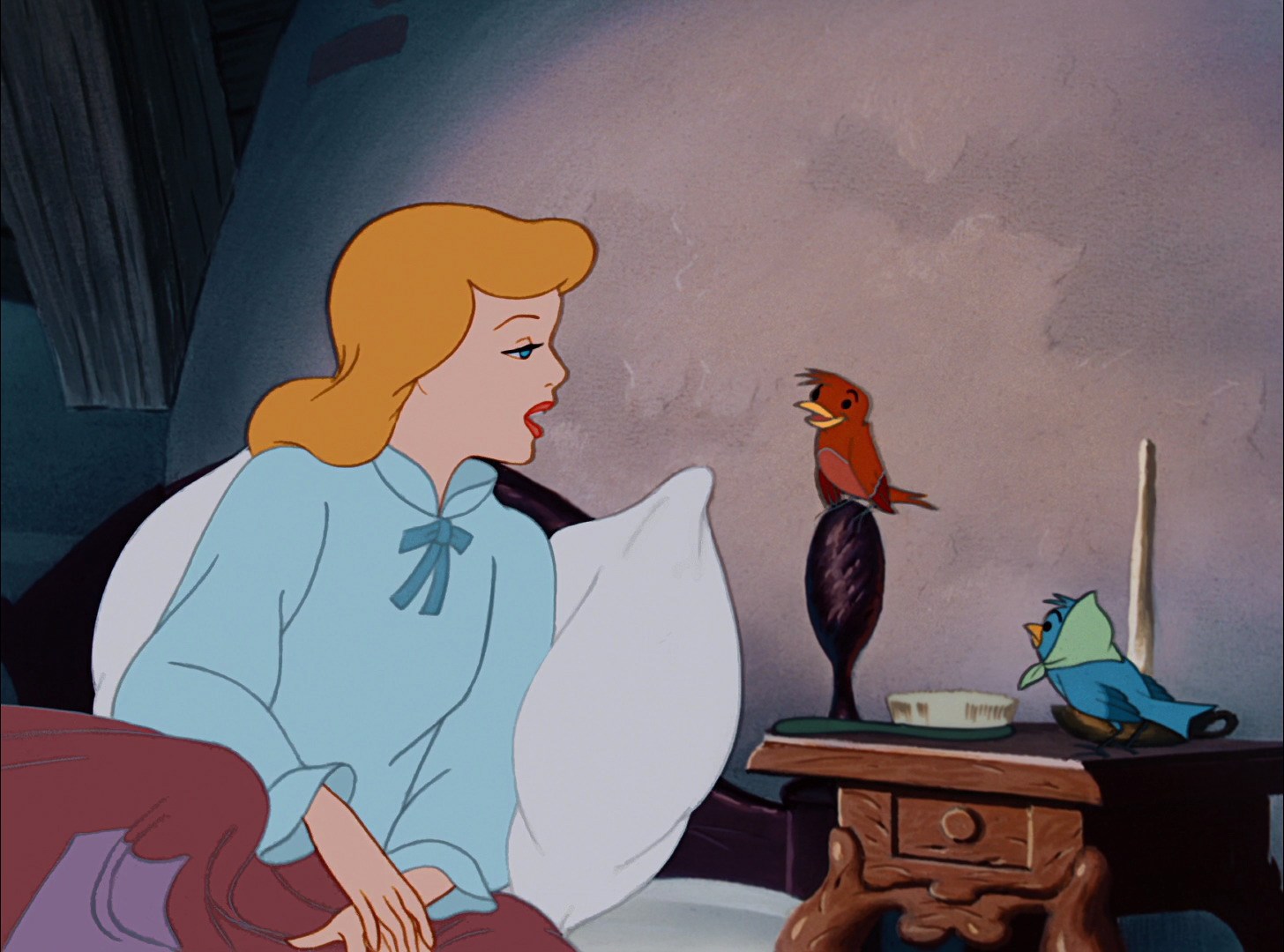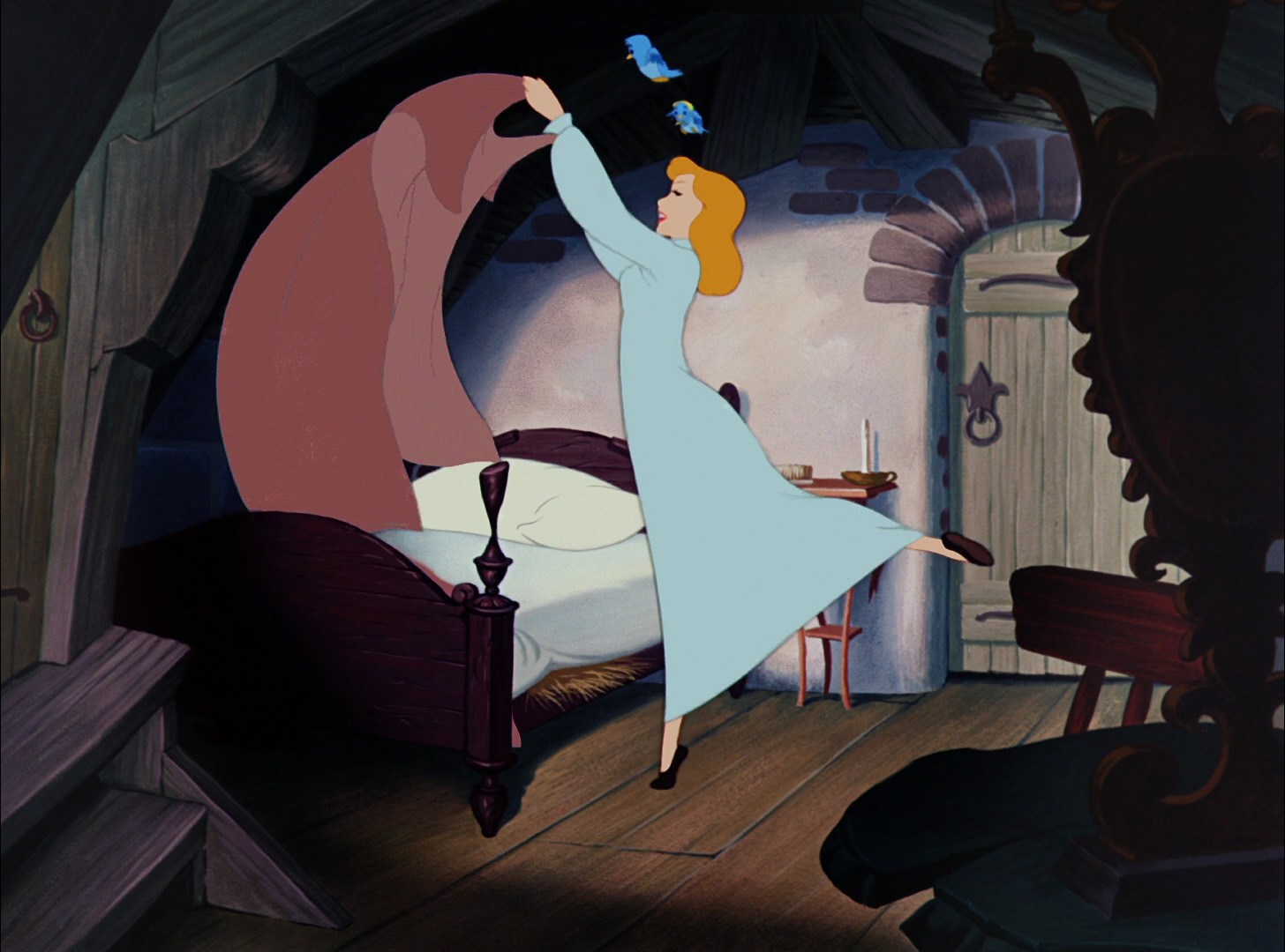 This respect is genuine, unlike the outward meekness she shows to her step-family, and it earns her the undying loyalty and trust of her rodent and bird friends--which she relies on later in the film, since they come to her rescue after her stepmother locks her in the attic.