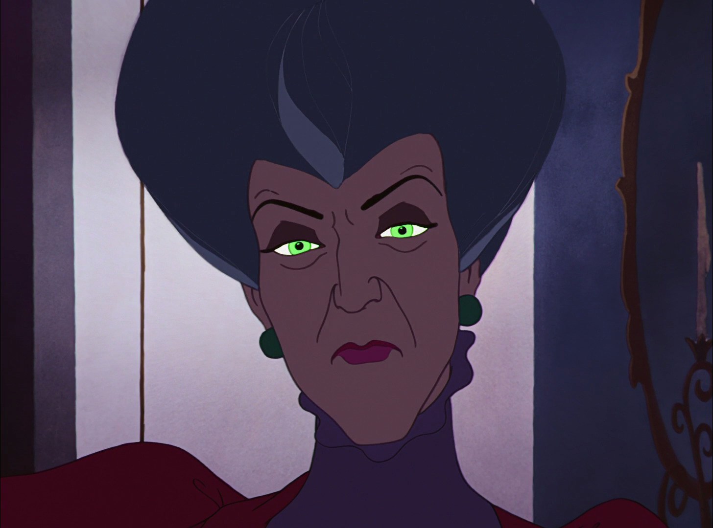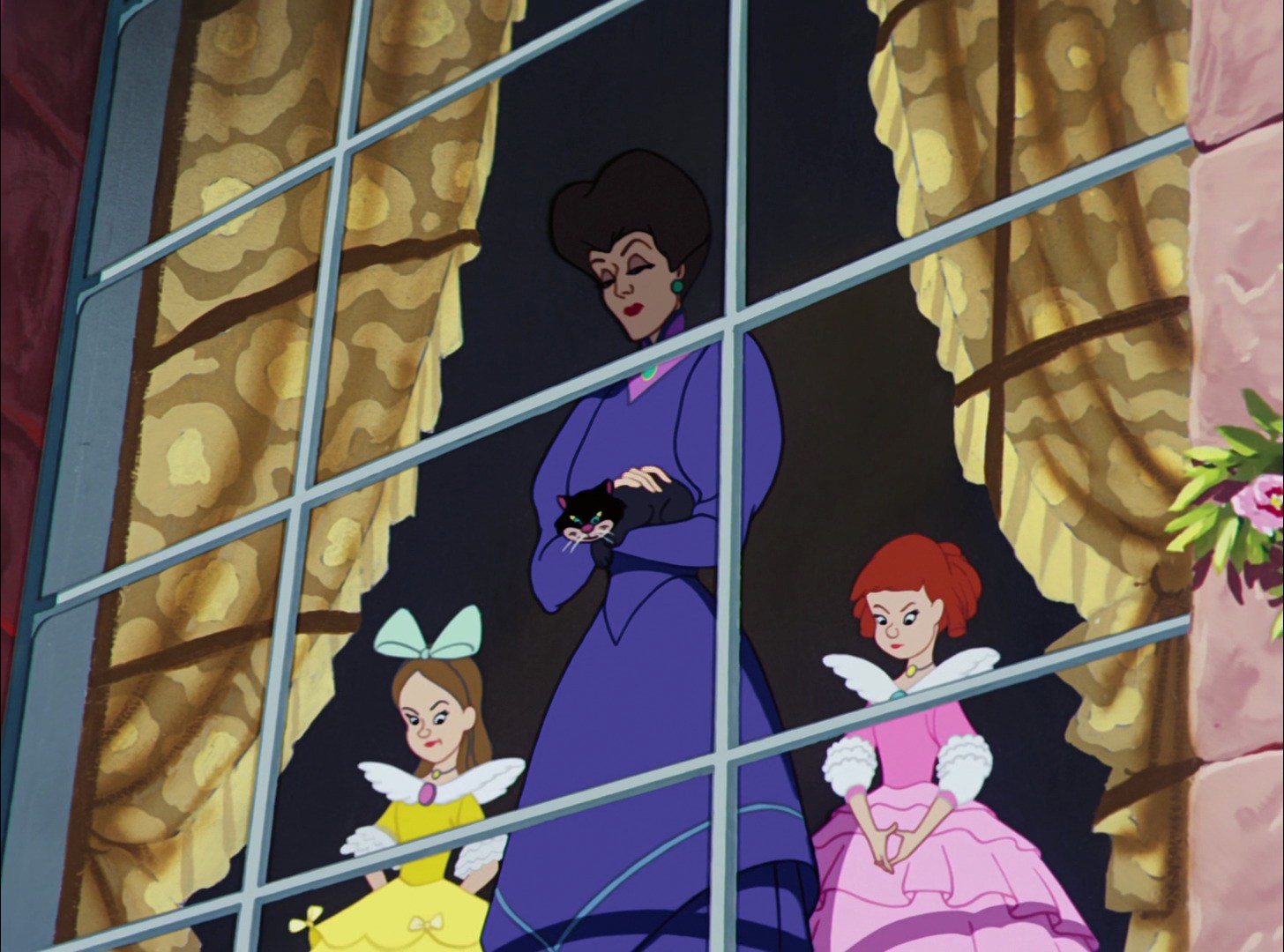 For instance, Anastasia and Drizella are miserable because they believe they are unlovable, and thus they feel they must stoop to trickery to even have a hope of getting married and being happy. Their mother nurses this belief because she can profit emotionally off her daughters' dependence on her, but she too believes she's unworthy of love--after all, both her husbands are dead and she's raising three children alone, so in her view, the universe or some higher power does not want her to be happy. Thus, why should anybody else (i.e., Cinderella) be happy and loved? (Ouch.) No wonder Lady Tremaine and her daughters' actions are so negative--all three are steeped in a toxic mentality that's hurting them just as much as they are hurting others.